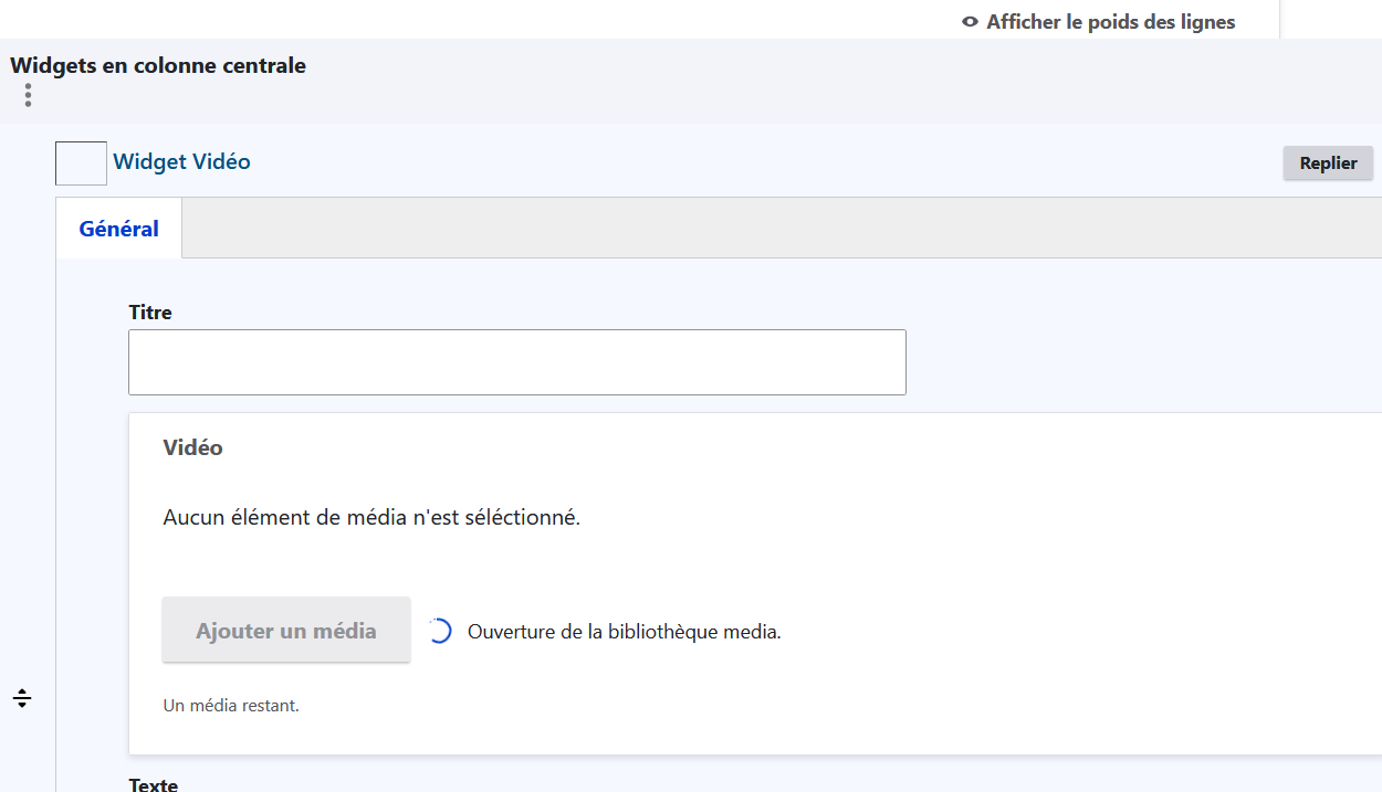 Le widget vidéo ne permets pas d'ouvrir la bibliothèque de média