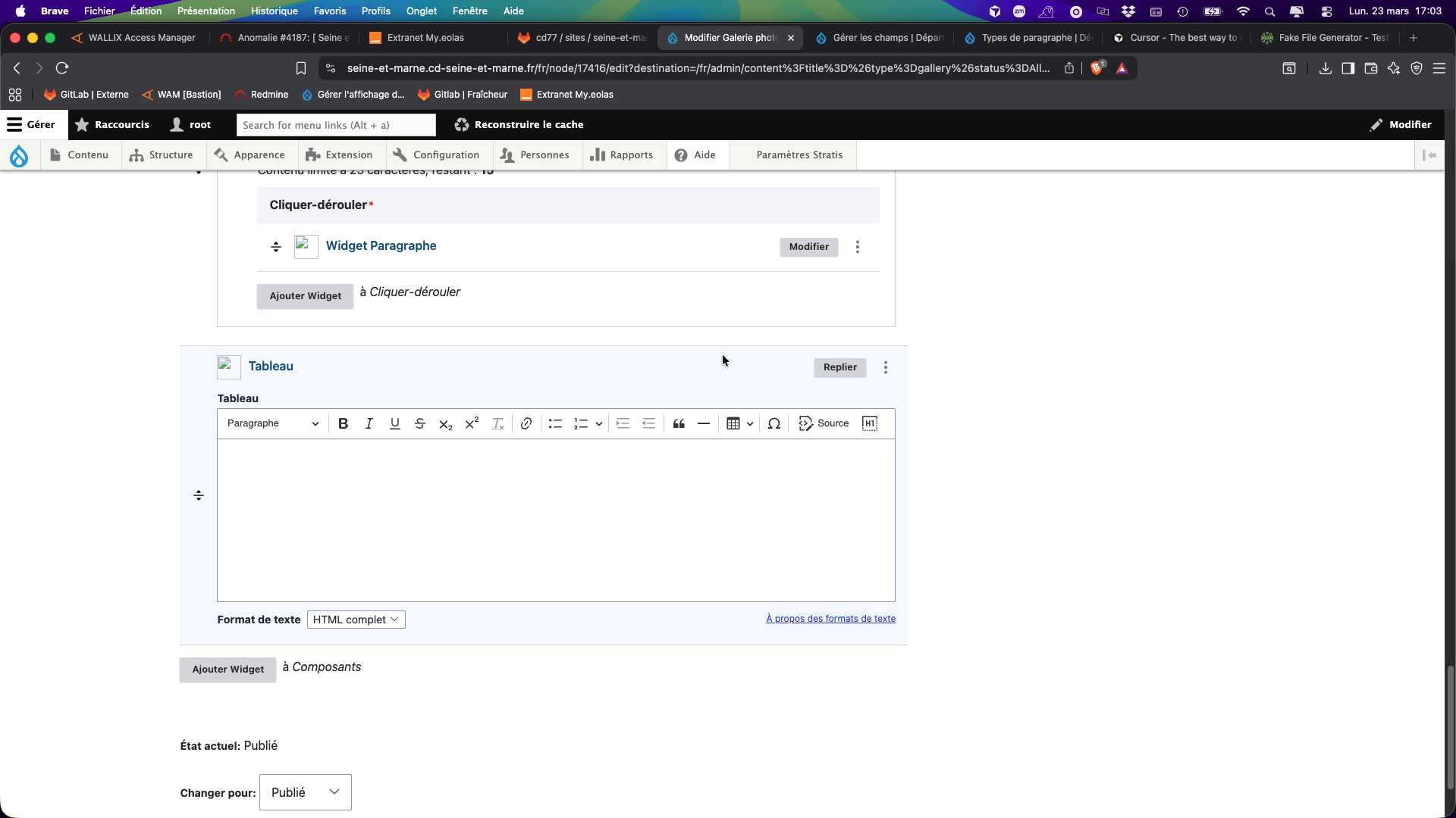 - Sujet changé de Seine et marne - Widget Tableau : Absent à [ Seine et marne ] - Widget Tableau : Absent